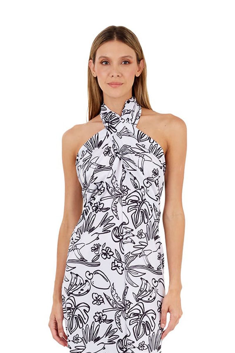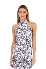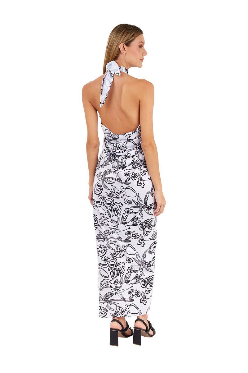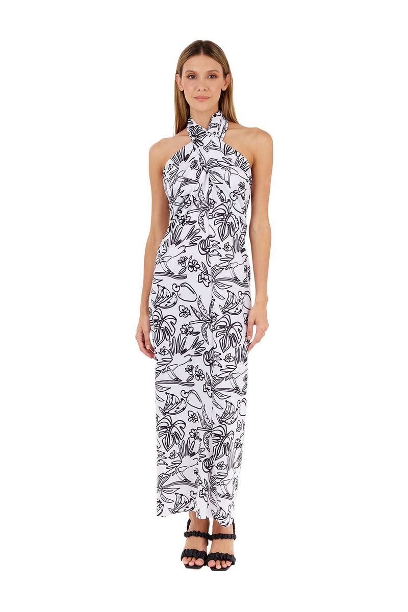Vestido Largo Tropico Estampado Marfil